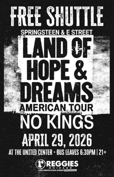 Start the party early at Reggies Music Joint, then hop on our FREE bus shuttles to see Bruce Springsteen at United Center! Return trip back to Reggies will occur after concert ends!