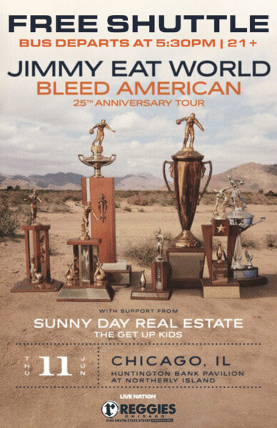 Start the party early at Reggies Music Joint, then hop on our FREE bus shuttle to Jimmy Eat World at Huntington Bank Pavilion at Northerly Island! Return trips back to Reggies will occur after concert ends!