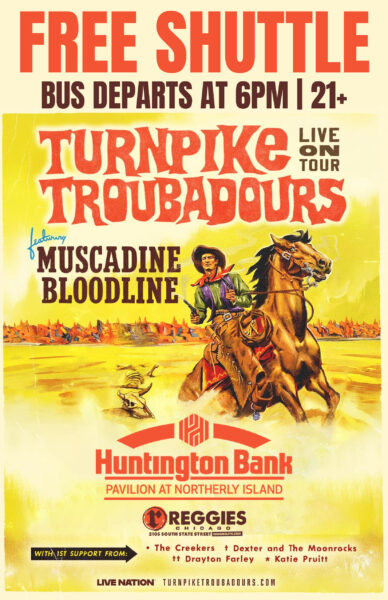 Start the party early at Reggies Music Joint, then hop on our FREE bus shuttle to Turnpike Troubadors at Huntington Bank Pavilion at Northerly Island! Return trips back to Reggies will occur after concert ends!