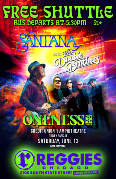 Start the party early at Reggies Music Joint, then hop on our FREE round trip bus shuttle to Santana & Doobie Brothers at Credit Union 1 Amphitheatre in Tinley Park!