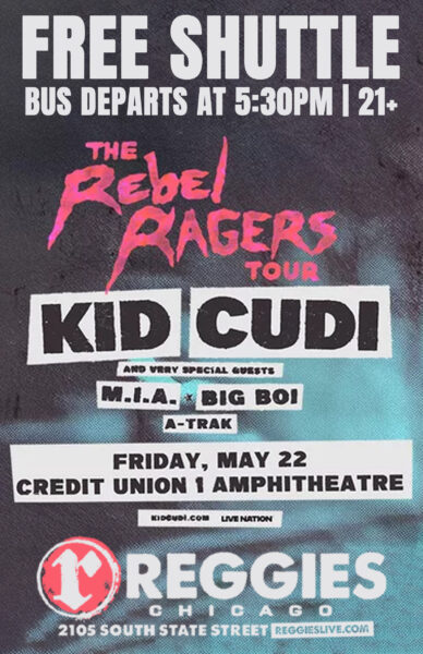 Start the party early at Reggies Music Joint, then hop on our FREE round trip bus shuttle to Kid Cudi at Credit Union 1 Amphitheatre in Tinley Park!