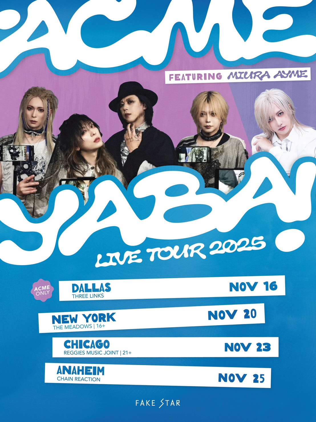 At Anime Expo 2018 in LA, CHISA walked the AX Fashion Show runway for Harajuku fashion designers KINGLYMASK, LISTEN FLAVOR, and HYPER CORE. ACME made their overseas debut performance at Anime Milwaukee 2019 and returned in June of that year at A-Kon in Dallas. ACME headlined a tour in January 2020 in 4 cities along the US west coast.
