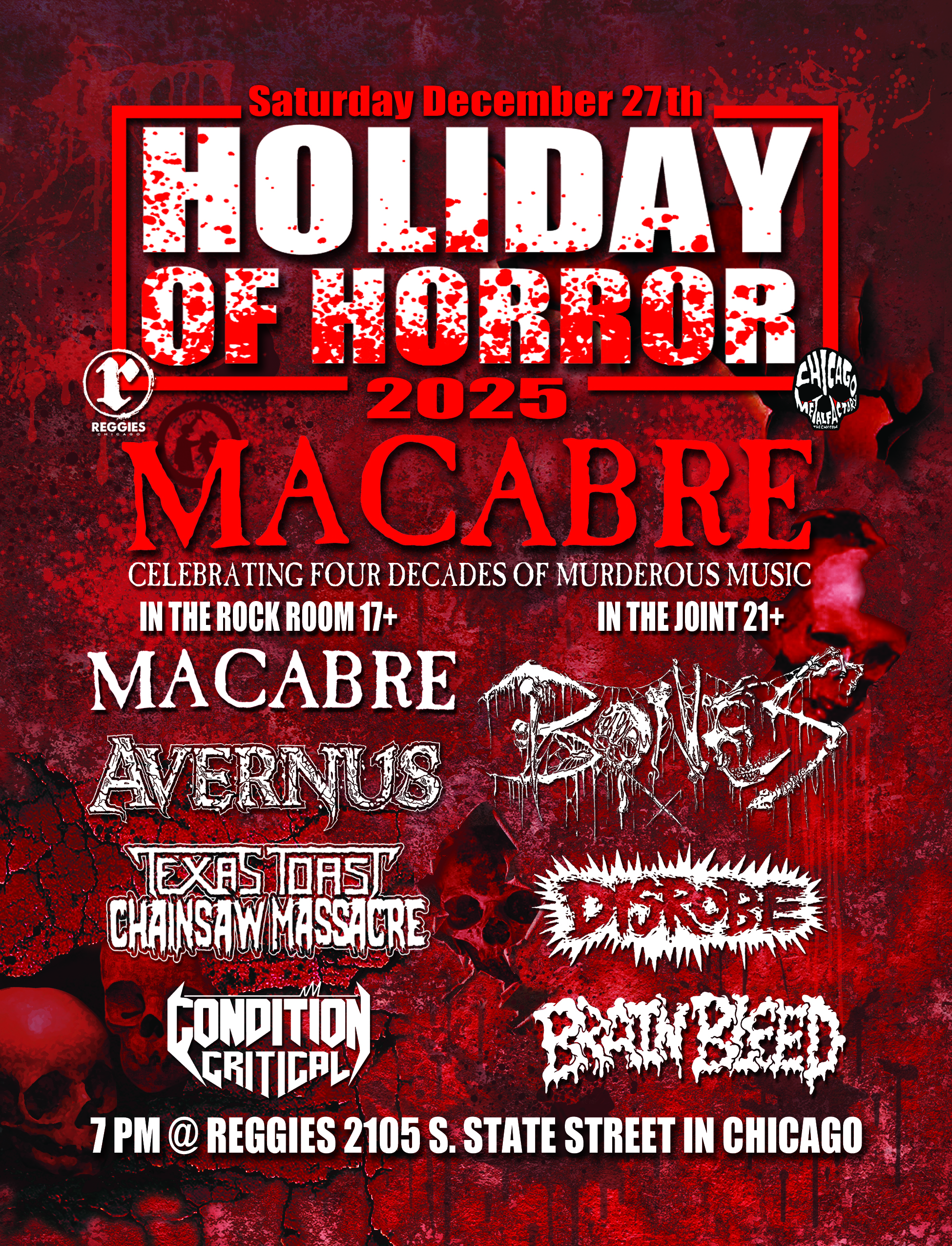 The Chicago Metal Factory presents Chicago’s annual Holiday Of Horror event featuring two rooms of heavy bands!