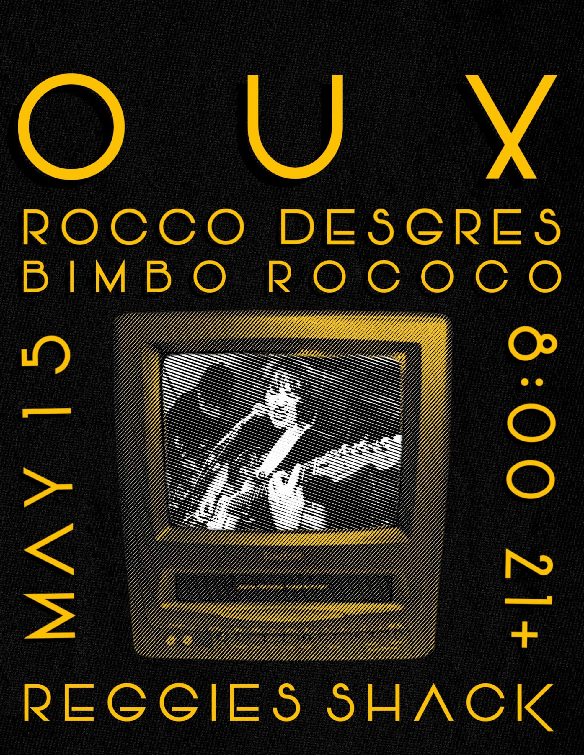 as a duo, they self-released their “honeymood” EP in 2019 which was re-released in 2020 via chillwavve records. in 2021, bassist arya woody and drummer vita cleveland joined oux. in 2022, vita departed on hiatus and alaska jules (she/her) drummed from 2022-2024 and contributed to necronym before vita returned in 2025. on necronym, oux etches hyper-personal lyricism into maximalist productions indicative of the chaos that boils under the narratives of reason, etching their names into a hypnagogic tryst that relishes in the depths of death and renewal.