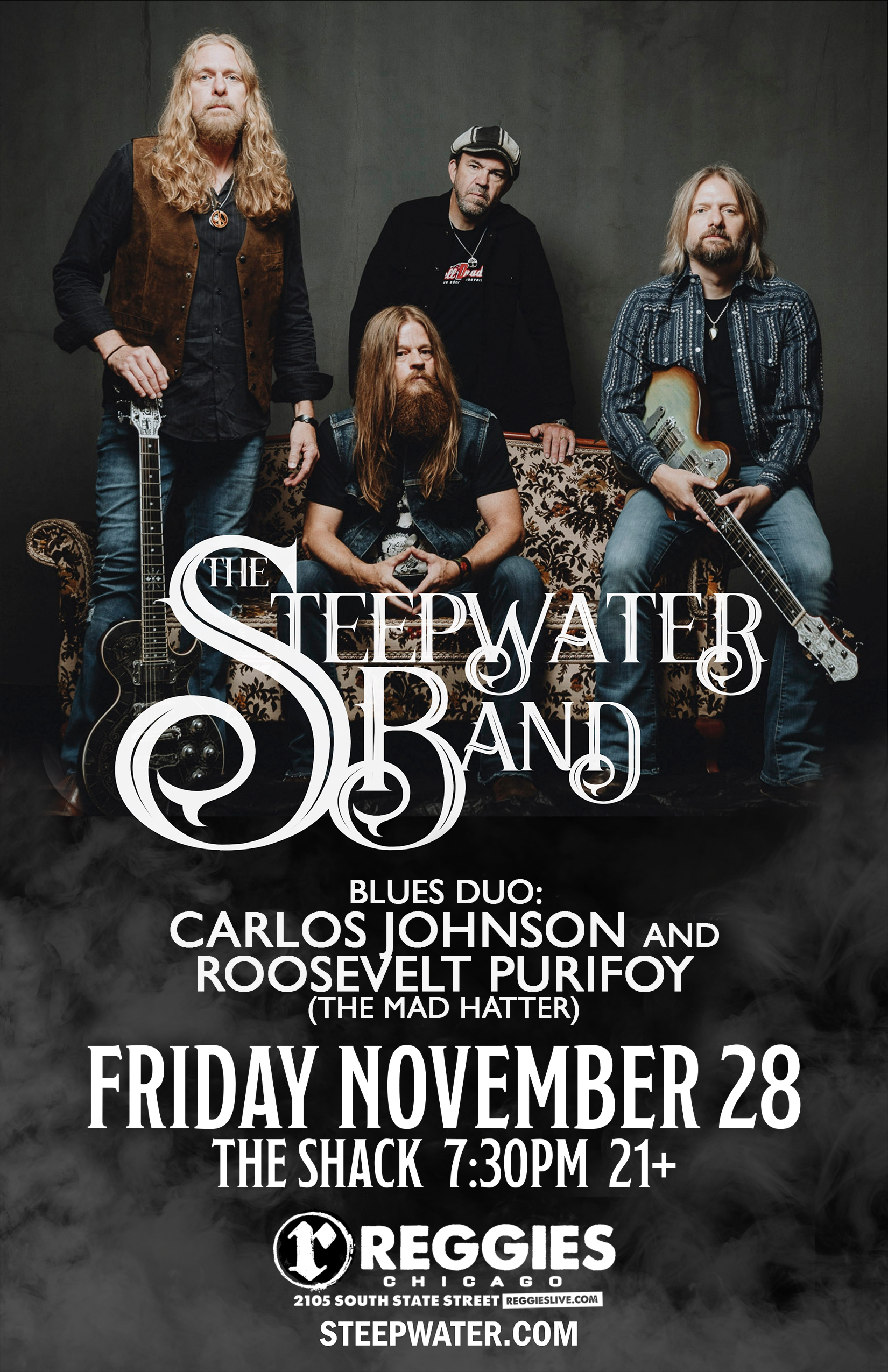 Something primal lurks in their music, but always wrestling with emotions and stories that are everyday-ready ~ music at once strut-inducing sexy and brass knuckles honest, a sound evolved smartly & patiently through countless gigs, running the bulls whenever and wherever they’ve been welcomed since 1998. AC/DC once said, “If you got the dollar, we got the song / Just wanna boogie woogie all night long,” and The Steepwater Band surely embodies this lip-smacking urge to get some in this mean old world, befitting the group’s Chicago roots and their earthy understanding of crackling city blues.