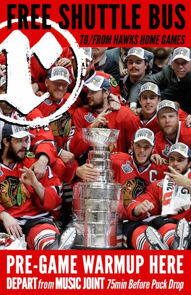 Going to the game? Travel in style by hopping on our Reggies Rock Bus to see The Blackhawks play at the United Center.
