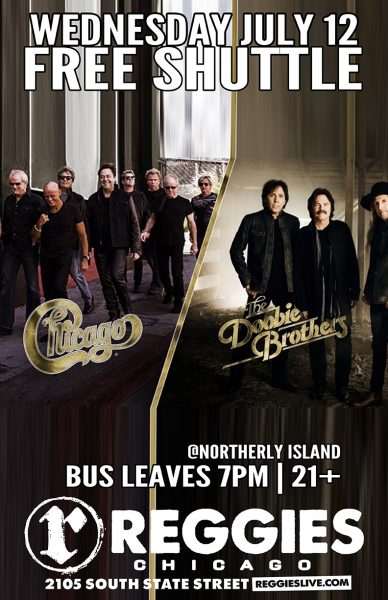Start the party early at Reggies Music Joint, then hop on our FREE bus shuttle to go to see Chicago and The Doobie Brothers at Huntington Bank Pavilion at Northerly Island! Bus will leave approximately 30 minutes before the concert begins. Return trip back to Reggies will occur after concert ends.