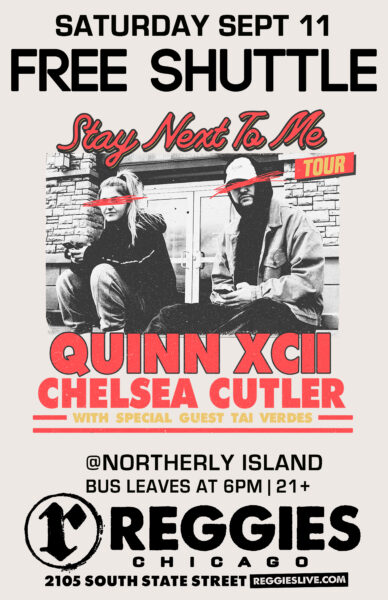 Start the party early at Reggies Music Joint, then hop on our FREE bus shuttle to go to see Quinn XCII & Chelsea Cutler at Huntington Bank Pavilion at Northerly Island. Shuttle leaves approximately 30 minutes before the concert begins. Return trip back to Reggies will occur after concert ends.