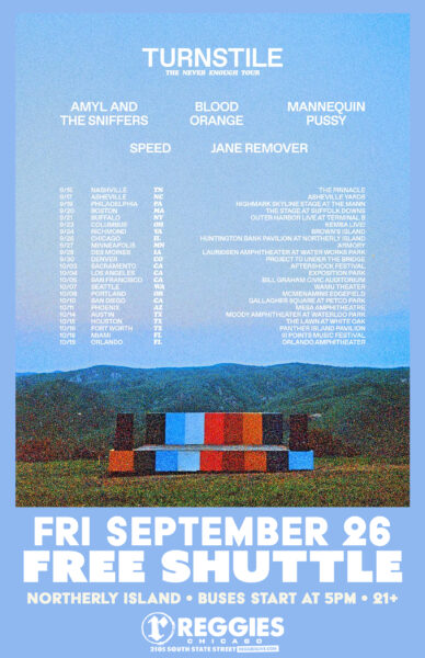 Start the party early at Reggies Music Joint, then hop on our FREE bus shuttle to Turnstile at Huntington Bank Pavilion at Northerly Island! Return trips back to Reggies will occur after concert ends!
