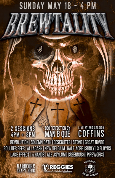 Hardcore Session :: 8 PM + Live performance by Coffins (optional)Our second event in our concert series with Reggie’s Music Joint. This time around we’ve teamed up with Chicago Beer Geeks to bring this event alive during Chicago Craft Beer Week. We’re taking over the whole place and will have some insane taps in the Music Joint, Rooftop, and The Venue.ManBQue will be on the rooftop grilling up some beer influenced nosh.There will be a special buffet menu available for those who wish to partake. Second session attendees will have the option to see a live performance by the Japanese metal band, Coffins.