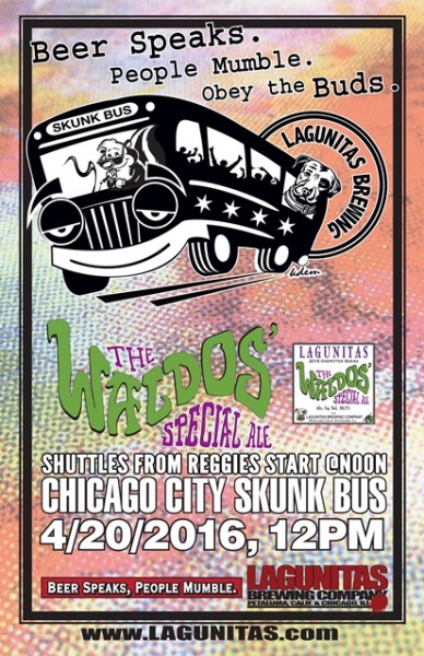 Starting at High Noon, hop on the Waldo Skunk Bus to help the Lagunitas Crew find Waldo! After a ride throughout the city exploring special tappings and suprises, the party will land at Bottom Lounge.
