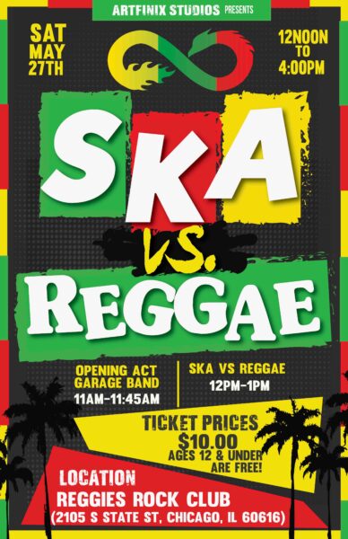 artfinix studio presents: Sat May 27 2023 Next Stop Motown: 2pm-3pm The Beatles: 1pm-2pm Ska vs Reggae: 12pm-1pm Opening Act: Garage Band class 11am-11:45am 12pm-4pm $10 – door only All Ages – Free for under 12 https://www.artfinixstudios.com/ NEXT STOP MOTOWN THE BEATLES SKA VS REGGAE