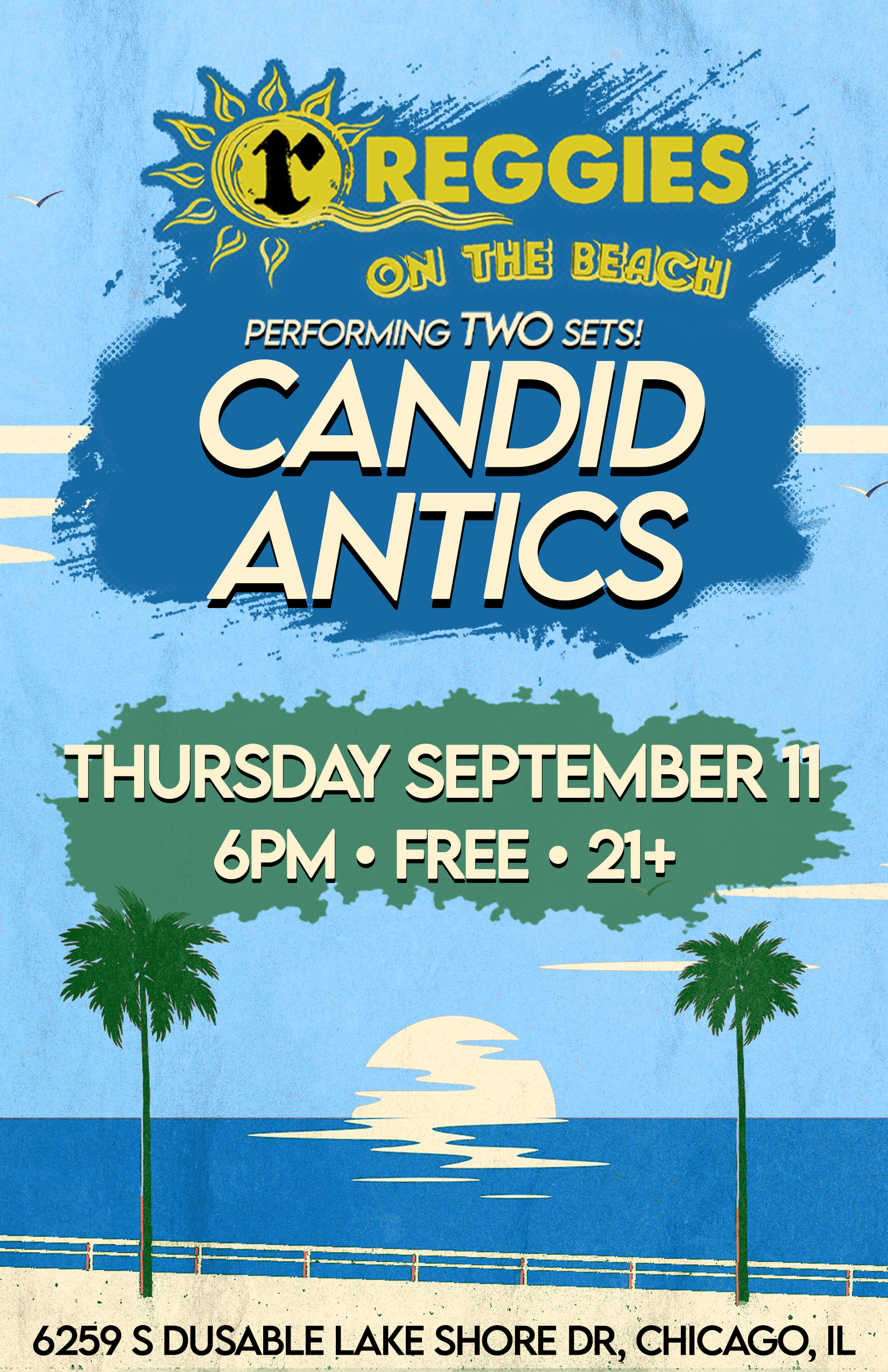 Enjoy a Free show with Candid Antics at Reggies on the Beach located at 63rd St.