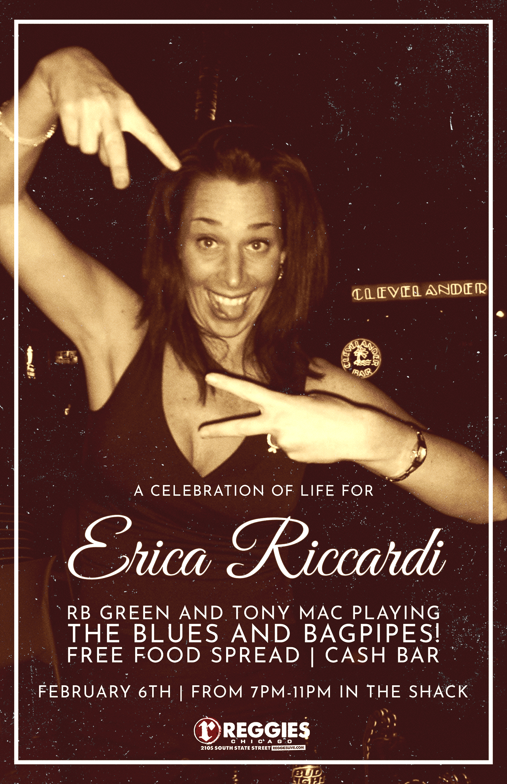 in memory of erica riccardi Fri Feb 06 2026 Celebration of Life for Erica Riccardi Cash bar Food Spread Music by RB Green and Tony Mac ERICA RICCARDI CELEBRATION OF LIFE