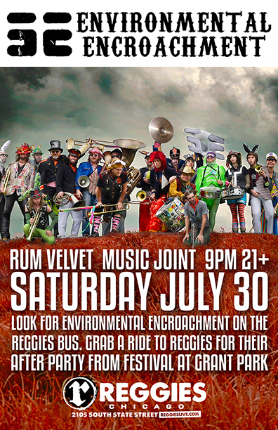 Look for Environmental Encroachment on the Reggies Rock Bus. Grab a ride to Reggies for their after party!
