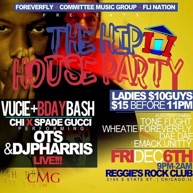 Reggies presents Fri Dec 06 2013 HIP HOUSE PARTY Performances by: Fli Nation Forever Fly Committee Music Group Top Flght Entertainment Who Betta Camp