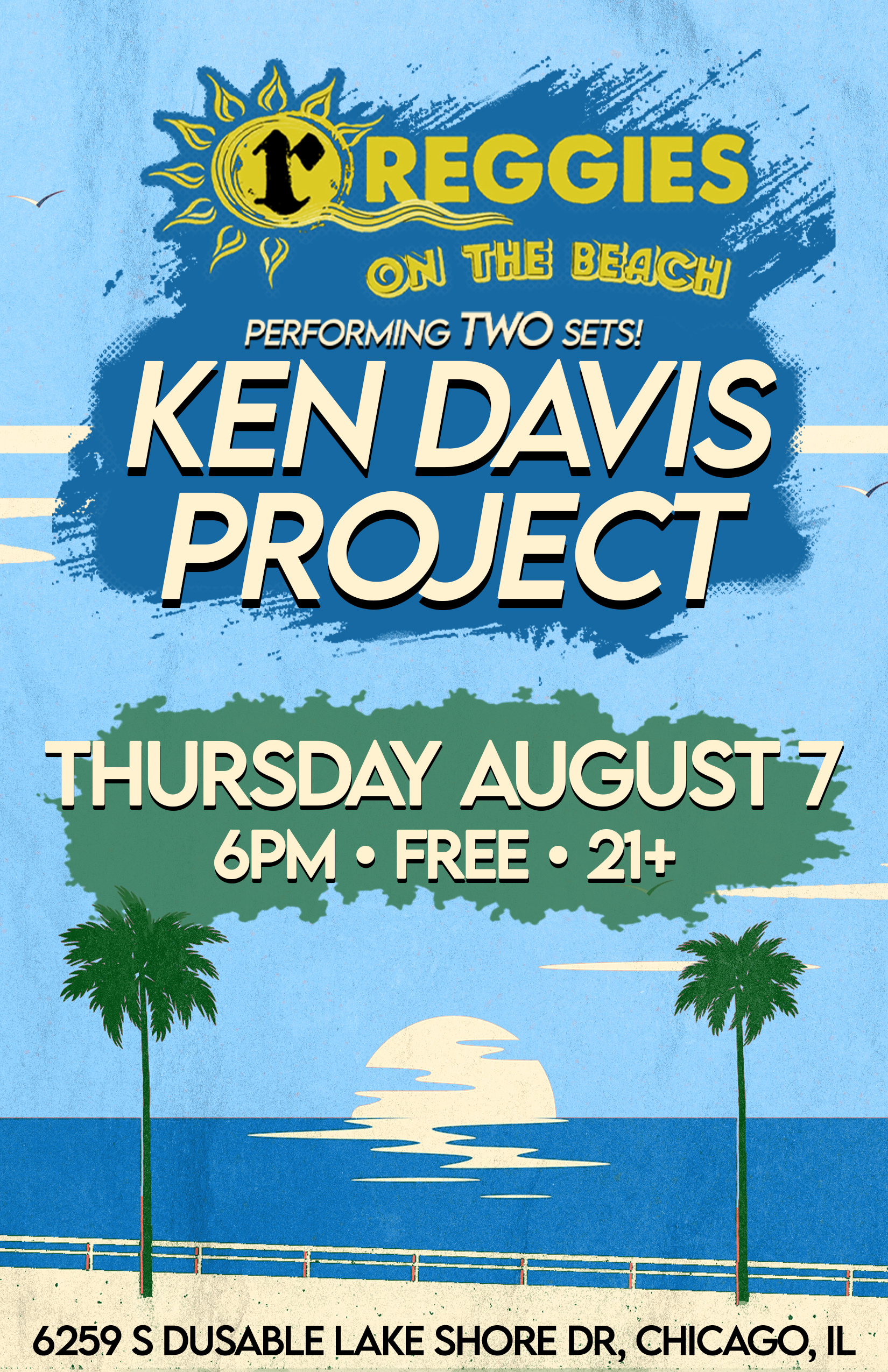 R&B / Soul Thu Aug 07 2025 Enjoy a Free show with Ken Davis Project at Reggies on the Beach located at 63rd St. No Cover, 6-7pm set 1, 730-830pm set 2 KEN DAVIS PROJECT Ken Davis Project is a Soul/R&B band from Chicago. Facebook