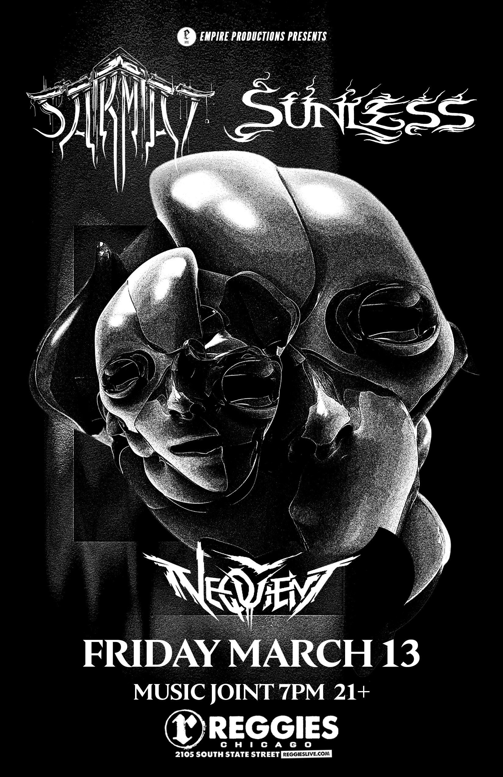 Formed in 2015, SUNLESS draws influence from pioneers of extreme and dissonant metal such as Gorguts, Ulcerate, and Meshuggah, reinterpreting the sounds through an abstract lens that is all their own. Comprised of bassist Mitch Schooler (Nerves, Modulus), drummer Taylor Hamel (Aziza), and guitarist/vocalist Lucas Scott (Obsolete, Australis, Pestifere), the band features a prominent rhythm section, a scattered assortment of time signatures, interwoven and complex arrangements, and bellowing death growls, akin to the output of Artificial Brain, Baring Teeth, and Pyrrhon.