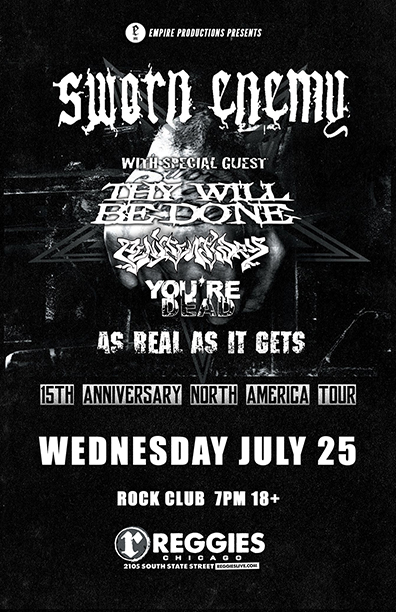 During the next few years the band saw some lineup changes. In May of 2014 the band regrouped with new members and released “Living On Borrowed Time” on Rock Ridge records. They followed the album with several tours including tours in the U.S., Canada, and Europe. Sworn Enemy is still touring in support of “Living On Borrowed Time.”