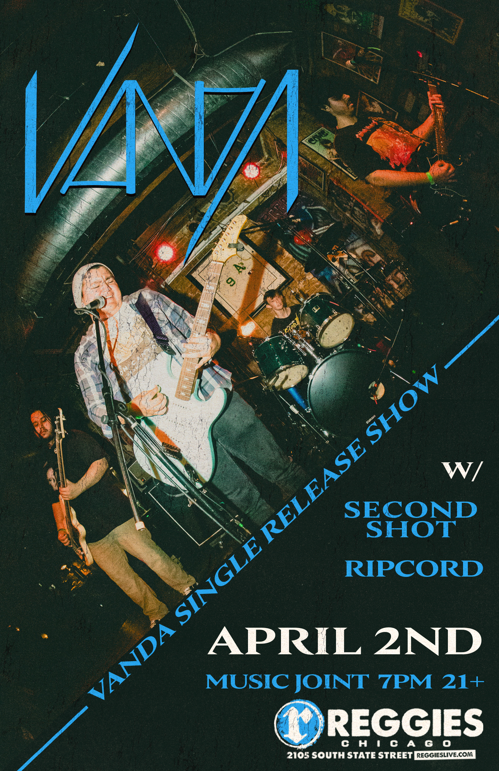 vanda single release show Thu Apr 02 2026 VANDA Vanda is a four piece up and coming alt rock band from the Illinois area. Band Website Spotify Facebook Instagram SECOND SHOT Second Shot Chicago Pop Punk Spotify Instagram RIPCORD Ripcord is four dudes who met on the sexy side of the internet. Their sound has indie and punk influences with catchy vocal hooks. Ben Aquino (lead guitar), Mike O’Brien (drums), Alex Archibeque (bass & vocals), and Jack O’Shea (guitar & vocals) Instagram