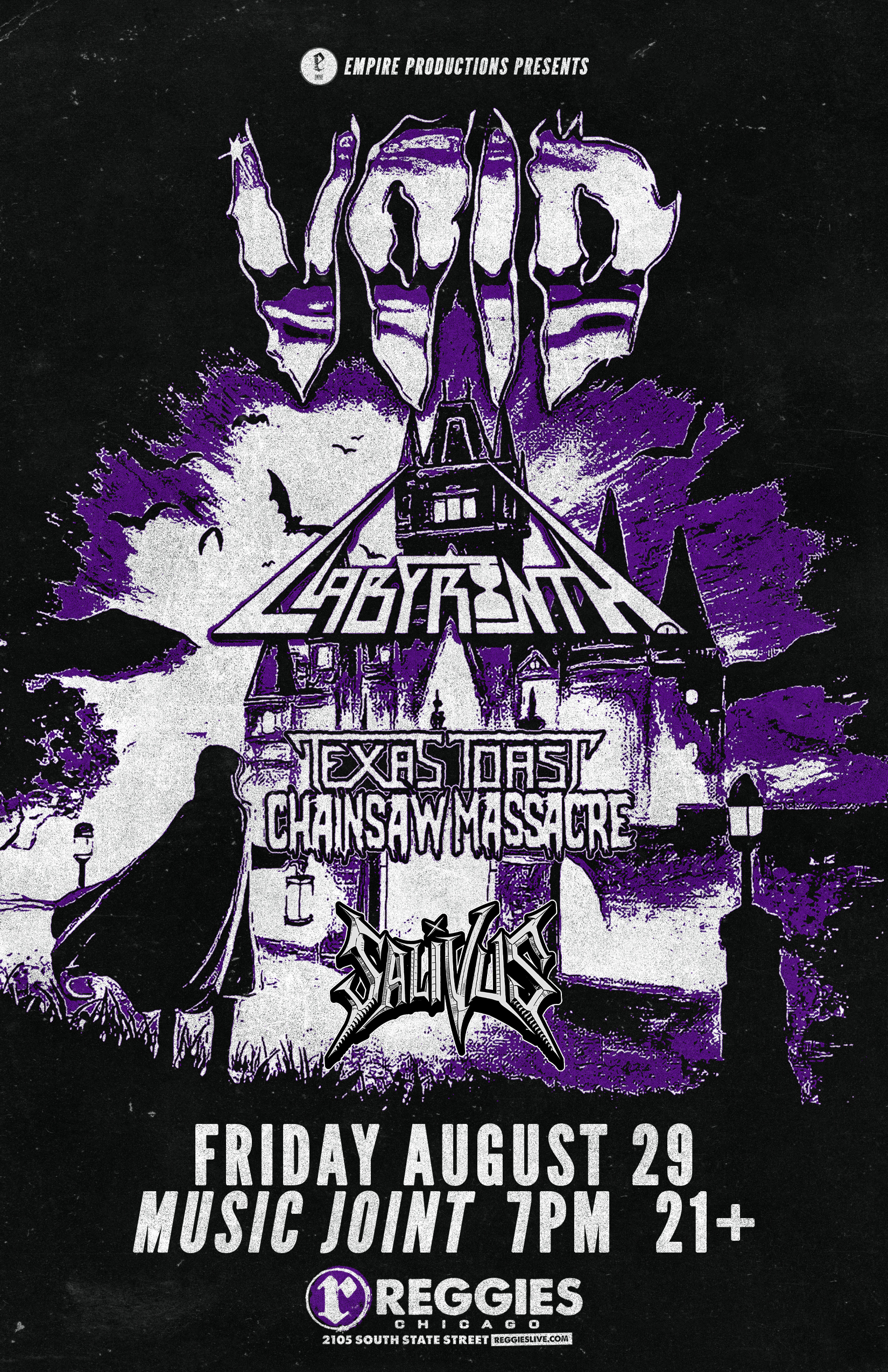 After building regional momentum with local shows and their first Southern U.S. tour in late 2022, Void released their debut album Horrors of Reality in early 2023—a raw and relentless fusion of Bay Area thrash aggression and the band’s sinister themes. Their summer Haunted Madness tour followed, capped by the Halloween release of their single “Silent Onslaught.”